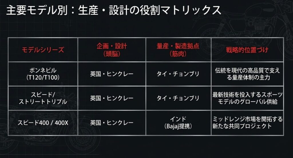 - ボンネビルやスピード400など人気モデルの製造国の考え方